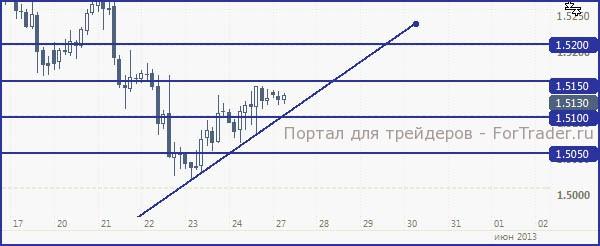 Опережающий индекс потребительского климата в Германии (по расчету GfK Group) для июня зафиксировался на отметке в 6.5 пунктов (с предыдущих 6.2 пункта, прогноз также находился вблизи 6.2). Стоит отметить, что данный показатель демонстрирует рост уже 5-ый месяц подряд, после достижения отметки в 5.7 пунктов в январе 2013 года. Статистика по ВВП Германии подтвердилась, за первый квартал объём ВВП вырос на 0.1% (в квартальном выражении), в годовом выражении показатель теряет 1.4%. Стоит напомнить, что кварталом ранее показатель упал на 0.7% и сильно надавил на евро (а текущие данные не смогли подкорректировать падение).