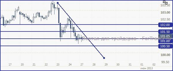 Пара доллар/йена, вероятно, постарается продолжить оставаться выше 101 и, пока, зафиксироваться в горизонтальном канале (рост ограничен отметкой 103).
