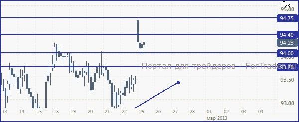 Пара доллар/йена, вероятно, постарается закрепиться выше 94 и продолжить рост к отметкам близким к 95.