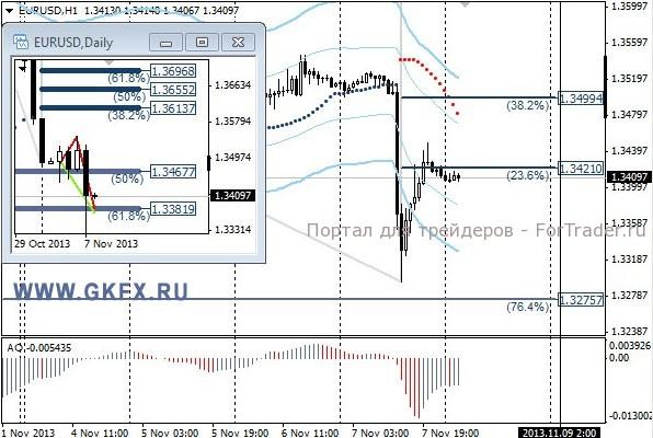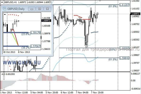 Пара EURUSD резко снизилась на неожиданном решении ЕЦБ понизить процентную ставку с 0,5% до 0,25%. Многие ожидали только намеков на возможное снижение ставки в декабре, а ЕЦБ сразу перешел к решительным действиям для стимулирования своей экономики. По рекомендации на продажу все цели выполнились. Сегодня будет, скорее всего, не менее активный вечер, так как ожидается выход данных по рынку труда в США. На эту неделю традиционно рассматриваю два варианта возможного движения цены, основной красный и альтернативный зеленый. Значимые уровни на сегодня отмечены на часовом графике. Индикатор АО находится в отрицательной зоне и растет, указывая на коррекцию перед возможным продолжением снижения. Индикатор тренда указывает на снижение. Под сегодняшние данные по США рекомендаций не даю.