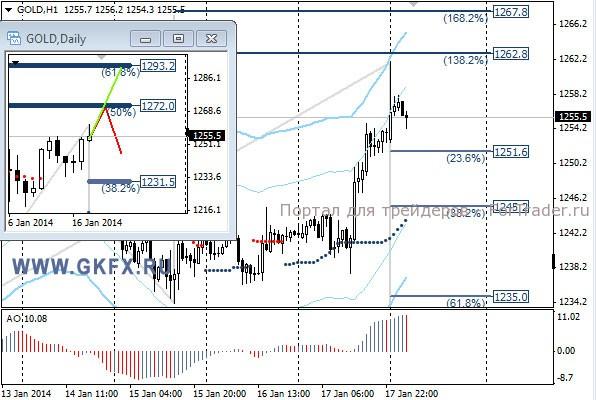 Цены на золото резко выросли в пятницу, не оправдав ожиданий. По рекомендации зафиксирован минус. Для меня непонятно основание пятничного роста. Плюс ко всему сегодня утром рост состоялся выше 1255,0 и цена выше этого уровня закрепляется. Это заявка на дальнейший рост цен на золото. Прошедшая неделя не отработала не один из сценариев. Традиционно делаю два варианта движения цены на неделю, основной красный и альтернативный зеленый. Значимые уровни на сегодня отмечены на часовом графике. Индикатор АО находится в положительной зоне и снижается, указывая на коррекцию перед возможным продолжением роста. Индикатор тренда указывает на рост. Сегодня наблюдаем за намерением участников рынка.