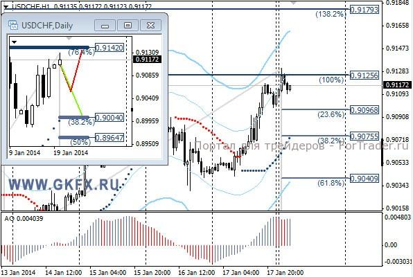 Пара USDCHF выполнила условие по рекомендации и позиция была открыта, две цели были достигнуты и если был установлен безубыток, то в результате он и сработал. Третья цель была достигнута сегодня утром. Сегодня в США выходной, поэтому волатильность на рынке будет ниже обычного, а с учетом пятничного движения, сегодня будет коррекция. Прошедшая неделя отработалась по красному сценарию. На эту неделю традиционно рассматриваю два варианта возможного движения цены, основной красный и альтернативный зеленый. Значимые уровни на сегодня отмечены на часовом графике. Индикатор АО находится в положительной зоне и растет, указывая на желание двигаться вверх. Индикатор тренда указывает на рост. Сегодня выступаем в роли наблюдателей.