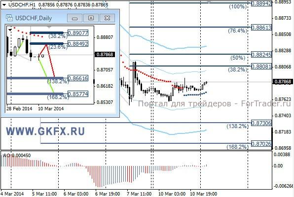 Пара USDCHF торговалась подобно евро в узком диапазоне на протяжении всего дня. Ожидаю роста пары к 0,8825 в рамках коррекции и возобновления снижения. Сегодня можно посмотреть, как пара поведет себя у уровня 0,8825, если до этого уровня дойдет. Если у уровня будут признаки нежелания расти дальше, можно поискать продаж. На эту неделю традиционно рассматриваю два варианта возможного движения цены, основной красный и альтернативный зеленый. Значимые уровни на сегодня отмечены на часовом графике. Индикатор АО находится у нуля, указывая на неопределенность. Индикатор тренда указывает на рост. Вход в продажи из района 0,8815/25 с целями 0,8790, 0,8760 и 0,8730.