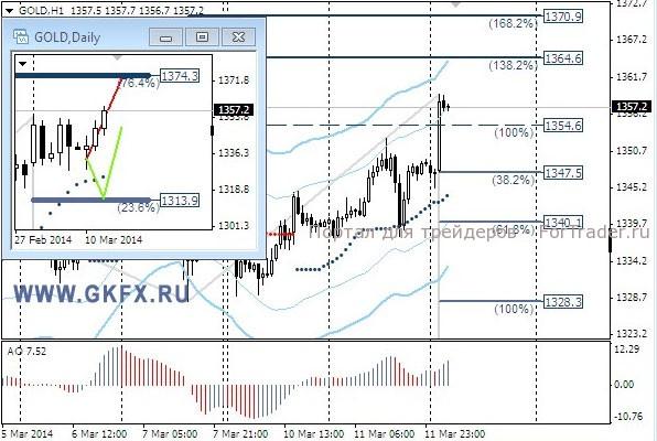 Цены на золото, как и предполагалось, пошли отрабатывать красный сценарий движения цены. Хороший импульс был пропущен сегодня, но можно попытаться войти на откате в покупки в расчете на продолжение роста. Традиционно делаю два варианта движения цены на неделю, основной красный и альтернативный зеленый. Значимые уровни на сегодня отмечены на часовом графике. Индикатор АО находится в положительной зоне и растет, указывая на желание инструмента двигаться вверх в данное время. Индикатор тренда указывает на рост. Покупки от 1350/55 с целями 1364,0 и 1370,0.