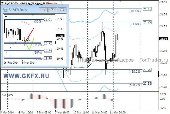 Цены на серебро формируют расширяющуюся модель, и это не совсем то, что хотелось бы увидеть. Продолжаем наблюдать со стороны, в ожидании внятной модели для входа. Традиционно делаю два варианта движения цены на неделю, основной красный и альтернативный зеленый. Значимые уровни на сегодня отмечены на часовом графике. Индикатор АО находится у нуля, указывая на неопределенность. Индикатор тренда указывает на рост. Вне рынка.