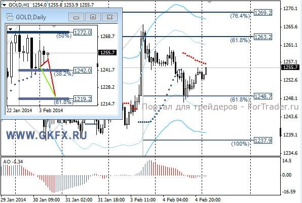 Цены на золото опускались к отметке 1250,0, сформировав глубокую коррекцию. Дальнейшая динамика видится так, если уровень 1255,0 цена преодолеет, тогда торги продолжаться в диапазоне 1250,0-1265,0. Если цены уверенно отскочат от уровня 1255,0, тогда возможно снижение в сторону 1240,0. Традиционно делаю два варианта движения цены на неделю, основной красный и альтернативный зеленый. Значимые уровни на сегодня отмечены на часовом графике. Индикатор АО находится у нуля, указывая на неопределенность. Индикатор тренда указывает на снижение. Преодоление 1248,0 позволит войти в продажи с целями 1242,0, 1238,0 и 1228,0.