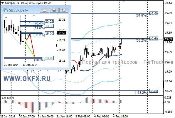Цены на серебро вчера проявляли желание к росту, однако, это всего лишь, на мой взгляд, результаты торговли в очерченном ценой диапазоне. Продолжаю ожидать по серебру торги в пределах 19,10-19,60. Традиционно делаю два варианта движения цены на неделю, основной красный и альтернативный зеленый. Значимые уровни на сегодня отмечены на часовом графике. Индикатор АО находится в положительной зоне и растет, указывая на желание инструмента двигаться вверх. Индикатор тренда указывает на рост. Вне рынка.