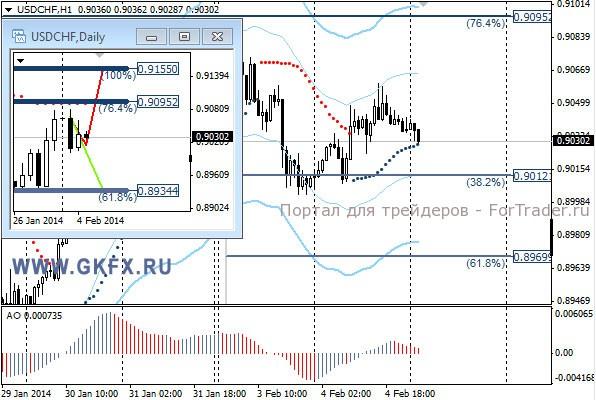 Пара USDCHF выполнила условие по рекомендации, и можно было войти в покупки. Достигнута была только первая цель, после чего можно было стоп перевести на уровень безубытка. В итоге он и сработал. Сегодня буду ожидать дальнейшего роста пары. На эту неделю традиционно рассматриваю два варианта возможного движения цены, основной красный и альтернативный зеленый. Значимые уровни на сегодня отмечены на часовом графике. Индикатор АО находится в положительной зоне и снижается, указывая на коррекцию перед возможным продолжением роста. Индикатор тренда указывает на рост. Преодоление 0,9060 позволит войти в покупки с целями 0,9080 и 0,9095.
