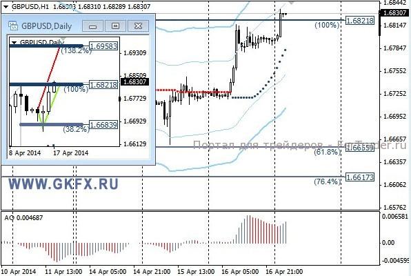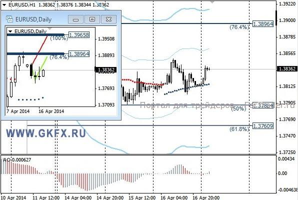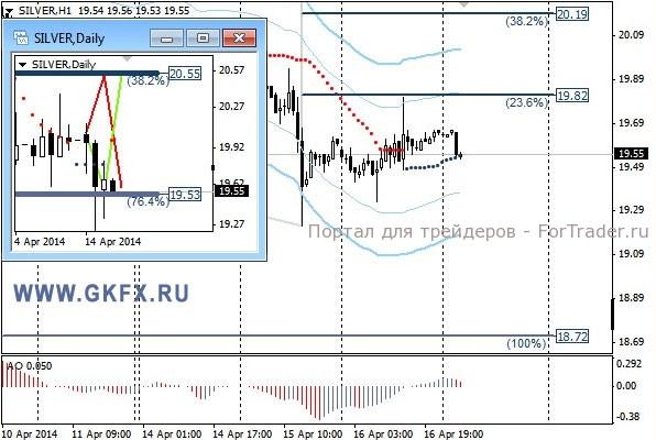 Цены на золото как можно заметить вчера консолидировались в узком диапазоне. Статистика по США оказалась смешанной и не оказала значительного влияния на динамику цен на золото. Сейчас цены на золото находятся между двух важных событий, это Китайские новости, указавшие на снижение потребления золота в этом году, что оказывает понижательное давление на золото и события в Украине, которые напротив, способствуют росту цен. Не знаю, на что участники рынка сделают ставку, поэтому стоим в стороне. Плюс ко всему завтра активность будет нулевая. Традиционно делаю два варианта движения цены на неделю, основной красный и альтернативный зеленый. Значимые уровни на сегодня отмечены на часовом графике. Индикатор АО находится у нуля, указывая на неопределенность. Индикатор тренда указывает на снижение. Вне рынка.