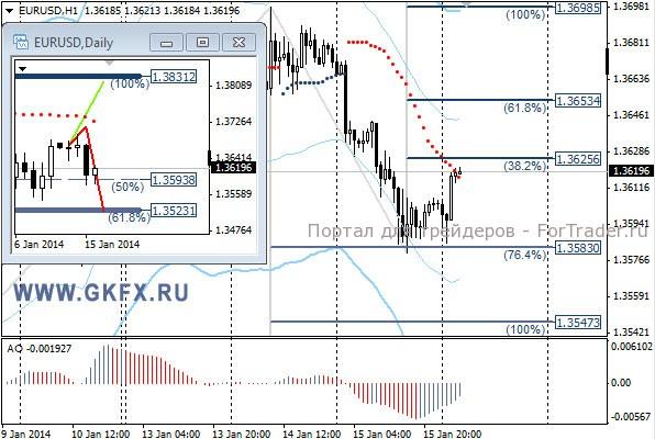 Пара EURUSD торговалась с понижением в соответствии с ожиданиями. По рекомендации сделка не исполнилась, так как отката вверх, на который я рассчитывал, не произошло. Вернее откат был, но минимальный. Сегодня с высокой вероятностью будет день коррекции, поэтому рекомендаций не даю. На эту неделю традиционно рассматриваю два варианта возможного движения цены, основной красный и альтернативный зеленый. Значимые уровни на сегодня отмечены на часовом графике. Индикатор АО находится в отрицательной зоне и растет, указывая на коррекцию перед возможным продолжением снижения. Индикатор тренда указывает на снижение. Вне рынка.