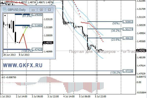 Пара GBPUSD преодолела отметку 1,5000 еще до сильных данных по США, что усилило ее снижение. Фунт против доллара за день прошел в три раза больше в пунктах, чем пара EURUSD. Снижению пары также поспособствовали заявления еще в четверг нового председателя Комитета по монетарной политике Банка Англии, который сказал, что ожидания среди инвесторов ужесточения политики завышенные. На этой неделе по традиции рассматриваю два варианта возможного движения цены, основной красный и альтернативный зеленый. Значимые уровни на сегодня отмечены на часовом графике. Индикатор АО находится в отрицательной зоне и растет, указывая на коррекцию перед возможным продолжением снижения. Индикатор тренда указывает на снижение. Сегодня день, скорее всего, будет вялым.