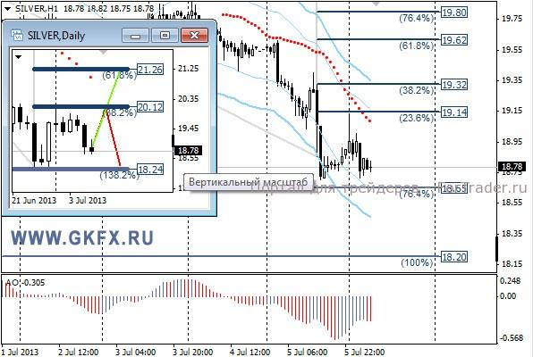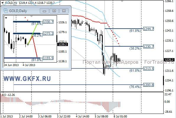 Цены на золото установились у уровня 1233,00 перед публикацией данных по рынку труда в США, а после публикации данных преодолели его резким снижением. Данные оказались чрезвычайно сильными для этого периода восстановления экономики США, что и вызвало такой серьезный рост доллара. Показатель вышел близкий к 200к новых рабочих мест, что свидетельствует о выздоровлении экономики. Плюс ко всему за предыдущий месяц также показатель был пересмотрен до 195к новых рабочих мест. Золото оказалось под новым ударом. На этой неделе ожидаются протоколы последнего заседания ФРС США, которые могут усугубить положение золота, либо его ослабить. Традиционно делаю два варианта движения цены на неделю, основной красный и альтернативный зеленый. Значимые уровни на сегодня отмечены на часовом графике. Индикатор АО находится в отрицательной зоне и растет, указывая на коррекцию перед возможным продолжением снижения. Индикатор тренда указывает на снижение. Возможен рывок к 1180,0 на этой неделе.