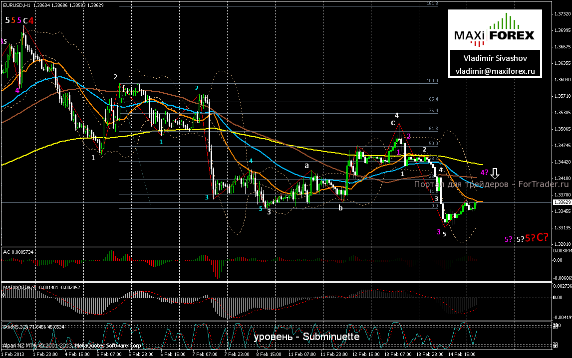 Уточнённые данные по ВВП Еврозоны, как правило, оказывают незначительное влияние на динамику торгов, так как редко преподносят «сюрпризы». Но только не в этот раз! Евро получил сильнейший удар, после публикации данных по экономическому росту Франции, Германии, Италии и Португалии, а также, в целом, по Еврозоне — за 4 квартал и период с начала 2012 года, которые оказались значительно ниже, и без того, явно, заниженных прогнозов. Падение объёма ВВП в Германии составило – минус 0.6%; во Франции – минус 0.3%; в Италии – минус 0.9%; в Португалии – минус 1.8%. В целом, по Еврозоне, Объём ВВП снизился до уровня – минус 0.6%. Фактические цифры показали углубление рецессии в регионе, что крайне разочаровало участников торговли, ожидавших позитивное изменение ситуации. Рынок отреагировал на полученные данные — агрессивными продажами евро, против американского доллара. Курс валюты, в обвальном падении, зафиксировал новый недельный минимум на отметке 1.3315. Американская сессия приостановила падение евро\доллара. Игроки стали фиксировать прибыль, нисходящий импульс на этом фоне – ослаб и курс валюты, несколько откорректировал падение, завершив торговый день на отметке 1.3362.