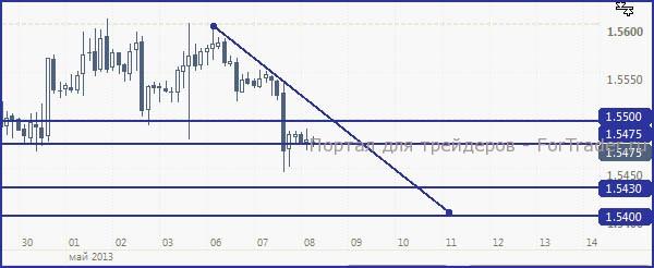 GBP/USD, вероятно, продолжит оставаться под 1.55 (на фоне отсутствия новостей), в ожидании новой идеи (завтра состоится публикация процентной ставки Великобритании).