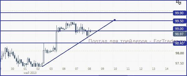 Пара доллар/йена, вероятно, постарается продолжить горизонтальное движение вблизи 99.