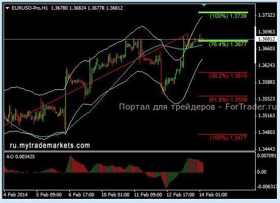 С технической точки зрения валютная пара EURUSD, как и ожидалось все двигалось к развороту тенденции. Однако это был лишь глубокий откат, что позволило немного заработать. По рекомендации сделка на продажу исполнилась по 1,3620, и цена достигала первой цели на уровне 1,3605. До второй цели на уровне 1,3560 цена не дошла несколько пунктов. Возможность подвинуть стоп на уровень безубытка была. На сегодня рекомендаций не даю, хотя ожидаю рост пары к 1,3740.
