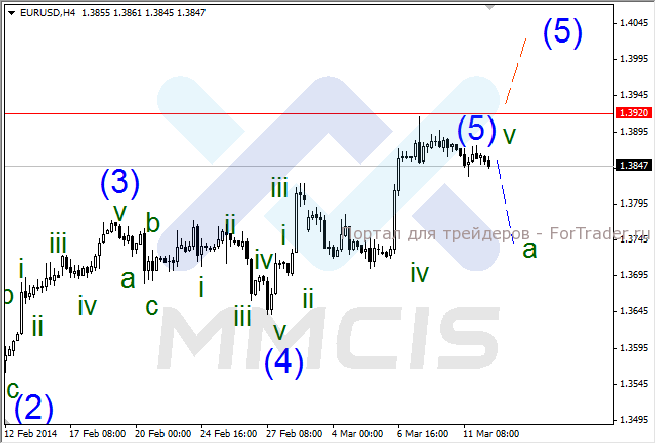 В качестве основного сценария рассматривается начало коррекции в рамках волны «а» к отметке 1.3750. В качестве альтернативного сценария рассматривается пробой уровня сопротивления 1.3920, что укажет на удлинение волны «5» к уровню 1.4000.