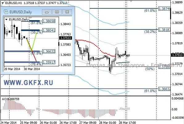 Пара EURUSD торговалась в ограниченном диапазоне, но отметила новые минимумы недели, тем самым достигнув первой цели по рекомендации на уровне 1,3720. Возможность поставить стоп на уровень безубытка была, в итоге он и сработал. На этой неделе ожидаются два важных события для пары, это заседание ЕЦБ в четверг и данные по новым рабочим местам в США в пятницу. На дневном графике на прошлой неделе отработался красный вариант. На эту неделю традиционно рассматриваю два варианта возможного движения цены, основной красный и альтернативный зеленый. Значимые уровни на сегодня отмечены на часовом графике. Индикатор АО находится у нуля, указывая на неопределенность. Индикатор тренда указывает на рост. Сегодня наблюдаем, сильных движений не ожидается.