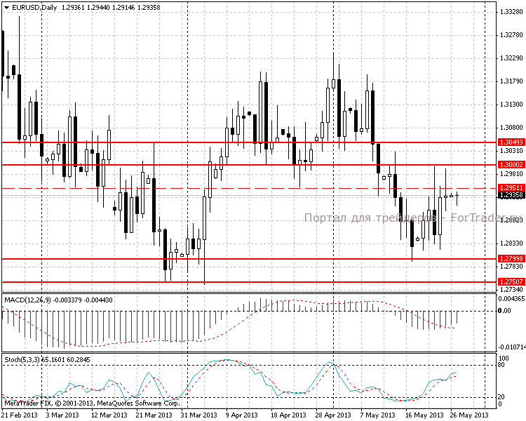 На данный момент техническая картина несколько неоднозначная. Сегодня банковские выходные в Великобритании и США, поэтому резкие движения маловероятны, лучше повременить с торговлей. В среднесрочной перспективе больше склоняемся в сторону падения: при пробое уровня 1,2900 могут активизироваться продажи с целями 1,2850 и 1,2800.
