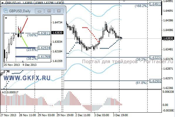 Пара GBPUSD вновь протестировала уровень 1,6410 и опять спустилась ниже. Уровень серьезный и на прохождение понадобится время. Пока заявка на прохождение уровня в силе, так как статистика по Великобритании выходит хорошей и повод для дальнейшего роста есть. Сегодня выходит индекс деловой активности в сфере услуг, который является очень важным, так как в Великобритании услуги вносят большую часть вклада в ВВП. Ожидается хуже предыдущего, если выйдет лучше предыдущего, то очень вероятен прорыв уровня 1,6410. На этой неделе по традиции рассматриваю два варианта возможного движения цены, основной красный и альтернативный зеленый. Значимые уровни на сегодня отмечены на часовом графике. Индикатор АО находится в положительной зоне и снижается, указывая на коррекцию перед возможным продолжением роста. Индикатор тренда указывает на рост. Преодоление 1,6440 позволит войти в покупки с целями 1,6480 и 1,6500.