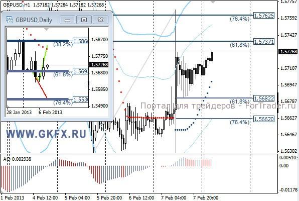 Пара GBPUSD в отличие от евро выросла в цене. Этому поспособствовали сильные данные по Великобритании, и по итогам заседания Банка Англии политика его осталась неизменной. На этой неделе рассматриваю два варианта возможного движения цены, основной красный и альтернативный зеленый, придерживаюсь красного. Значимые уровни на сегодня отмечены на часовом графике. Индикатор АО в положительной зоне и растет, указывая на желание пары двигаться вверх. Индикатор тренда указывает на рост. Вне рынка.