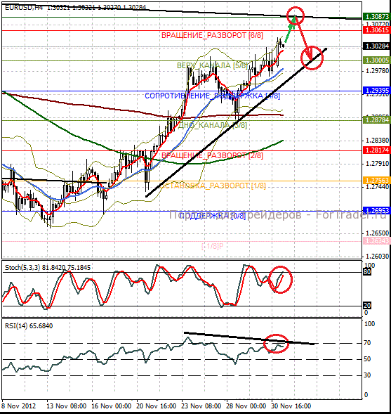 Скорее всего, локальный рост пары EURUSD ограничится уровнем 1.3065-85.