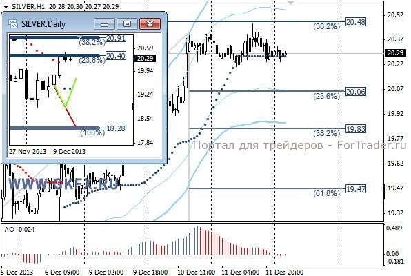 Цены на серебро в отличии от золота уверенно держится в диапазоне и даже установили максимум недели. Если ориентироваться на серебро, то потенциал роста у драгметаллов есть хороший. Традиционно делаю два варианта движения цены на неделю, основной красный и альтернативный зеленый. Значимые уровни на сегодня отмечены на часовом графике. Индикатор АО находится у нуля, указывая на неопределенность. Индикатор тренда указывает на рост. Покупки от 20,10 с целями 20,20, 20,50 и 20,90.
