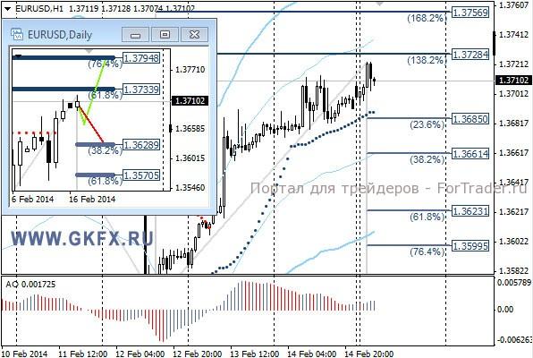 Цены на серебро продолжили рост, и значительно ускорились, но в такой ситуации запрыгивать в поезд очень опасно. Сегодня в США выходной, поэтому ничего не предпринимаем. На дневном графике на прошлой неделе не отработался не один из вариантов. Традиционно делаю два варианта движения цены на неделю, основной красный и альтернативный зеленый. Значимые уровни на сегодня отмечены на часовом графике. Индикатор АО находится в положительной зоне и растет, указывая на желание цены двигаться вверх. Индикатор тренда указывает на рост. Вне рынка.