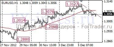 На момент написания комментария евро/доллар торгуется около 1.3056.