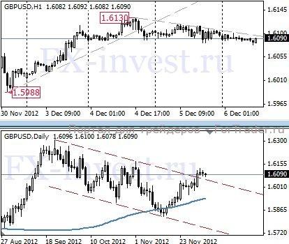 Фунт/доллар третий день торгуется выше бывшей линии тренда 50-дневного нисходящего канала, линия тренда/сопротивления которого отмечена сегодня вблизи 1.6057, и продолжает совершать коррекционное снижения от своего роста с 30 ноября по 4 декабря.