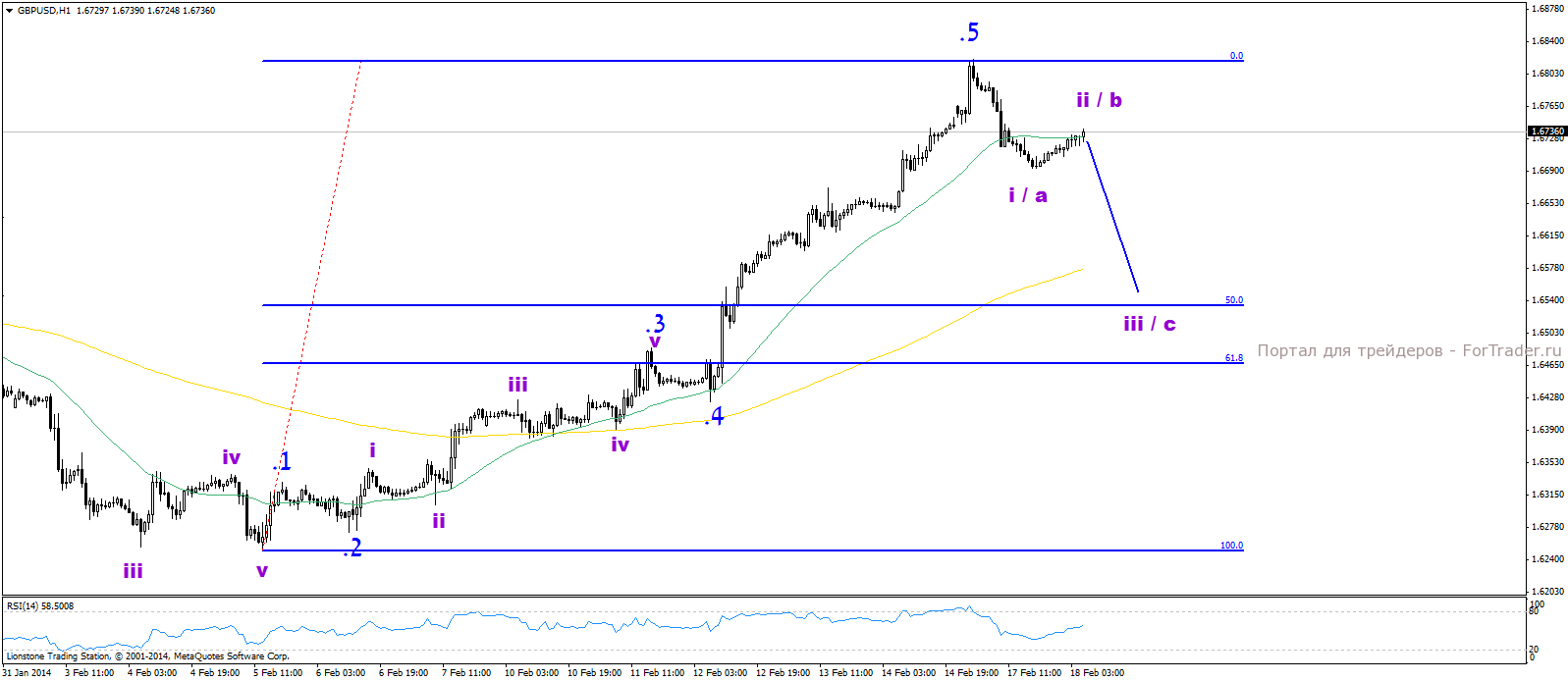 Фунт вырос против доллара до отметки 1.6820, тем самым обновив четырехлетний максимум. На данный момент пара снижается, и, вероятно, можно ожидать формирования импульсного нисходящего движения по направлению к 1.6540, после чего станет возможным более конкретно классифицировать движение как импульс или же как коррекцию.