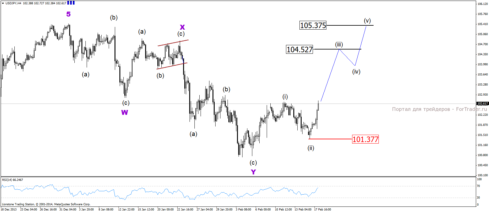 Наконец-то йена стала оправдывать прогноз в пользу роста, чему послужило заявление Банка Японии о продолжении монетарного стимулирования для достижения уровня инфляции на отметке 2%, после чего йена упала против всех валют, а курс пары доллар-йена достиг уровня 102.60. Разумно ожидать продолжения движения, перспективы которого можно оценить сначала на 104.50, а затем 105.37.