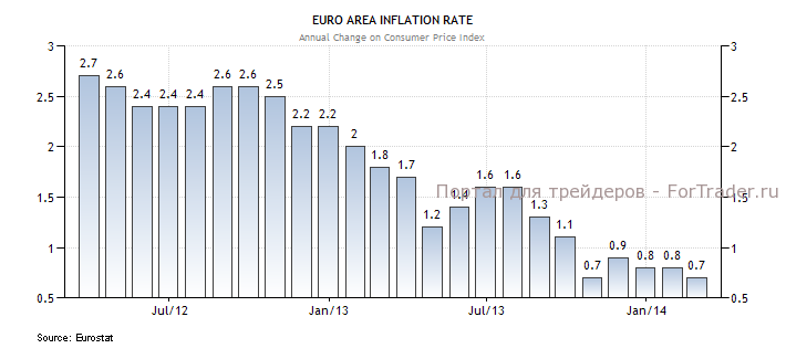 Инфляция снова упала к значениям октября прошлого года. Ее замедление не лучший симптом для европейской экономики, с таким трудом показывающей признаки выхода из кризиса. В то же время, темпы роста базовой инфляции в феврале не изменились по сравнению с январем и остались на уровне 1%.