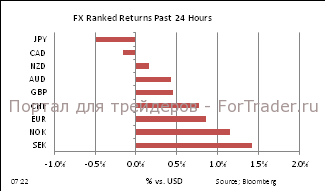 Мы отмечали уже стремление евро подняться вверх за счет закрытия части коротких позиций, что частично наблюдалось вчера, когда единая валюта прорвалась выше 1.28 на сочетании улучшения аппетита к риску и неплохих результатов последних долговых аукционов в еврозоне. Примечательно, что евро превзошел осси, луни и стерлинг вчера во время распродаж доллара. Более того, вчера была прекрасная возможность словить слом корреляции, наблюдавшейся с начала года, а именно, что рост акций сочетался с укреплением доллара, вместо обычной обратной взаимосвязи. На самом деле, еще нет никаких гарантий, что старая зависимость риск влючен/выключен, вернется к паре EUR/USD, но сейчас это может привести к дальнейшему ралли.