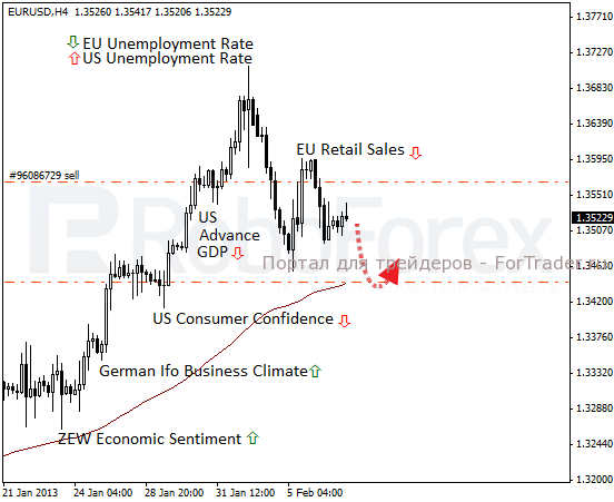Одновременно с началом пресс-конференции Марио Драги, в 17:30 МСК будут опубликованы данные по первичным заявкам на пособие по безработице в Штатах. Статистика ожидается на уровне 360k, что соразмерно со значением прошлой недели. Однако на рынке вполне возможны «качели», поэтому стоп по сделке на продажу уже перевёл на безубыток. В дальнейшем от линии скользящей средней может последовать отбой, после чего буду искать возможности для входа в покупки, поскольку основная тенденция по-прежнему остаётся бычьей.