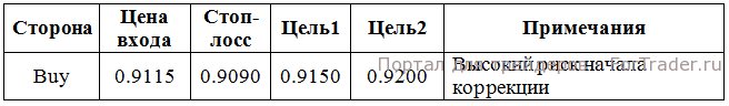 Технические уровни: поддержка – 0.9100; сопротивление – 0.9115, 0.9130, 0.9150.