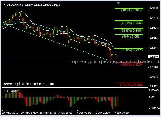 Валютная пара USDCHF продолжила снижение, достигнув цель 0,9335, и пошла ниже. Закрепившись ниже этого уровня, открывается цель 0,9000. Однако потребуется пройти поддержку в районе 0,9210 и затем вероятность достижения 0,9000 вырастет.