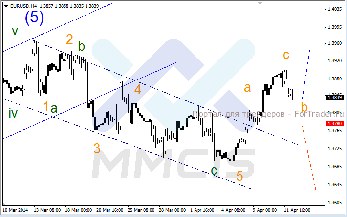 В качестве основного сценария рассматривается рост пары от уровня поддержки 1.3840 в направлении отметки 1.3950 в рамках волны «с». В качестве альтернативного сценария рассматривается пробой уровня поддержки 1.3780, после чего рынок будет стремиться к минимуму волны «5», в район уровня 1.3700.
