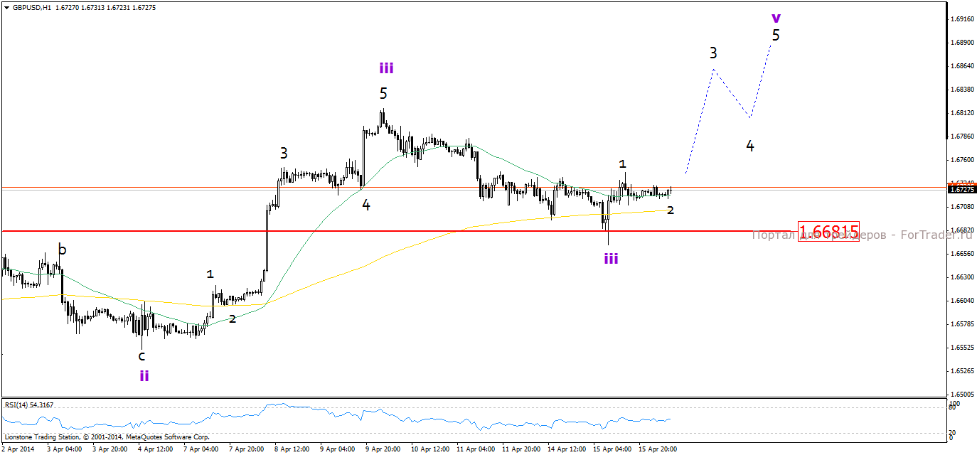 Пара уверенно оттолкнулась от уровня 1.6680. Коррекция закончилась и цена валютной пары находится в процессе формирования восходящего движения. Прогнозируем рост по направлению к 1.69.