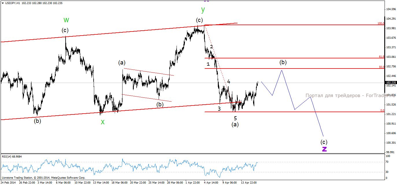 Разметка немного изменилось и теперь мы ожидаем дальнейшего снижения на фоне завершения нисходящего движения. Курс находится в формировании коррекции по направлению к 102.70. Следующей перспективной отметкой обозначим 100.