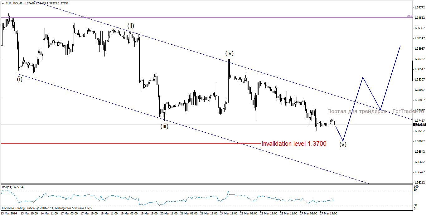 Нисходящее движение продолжается, пара приближается к отметке 1.37, ниже которой вероятность роста к ранее прогнозируемому уровню 1.4060 снизится практически до нуля. Но пока отмены разметки не произошло, мы придерживаемся ожиданий роста.