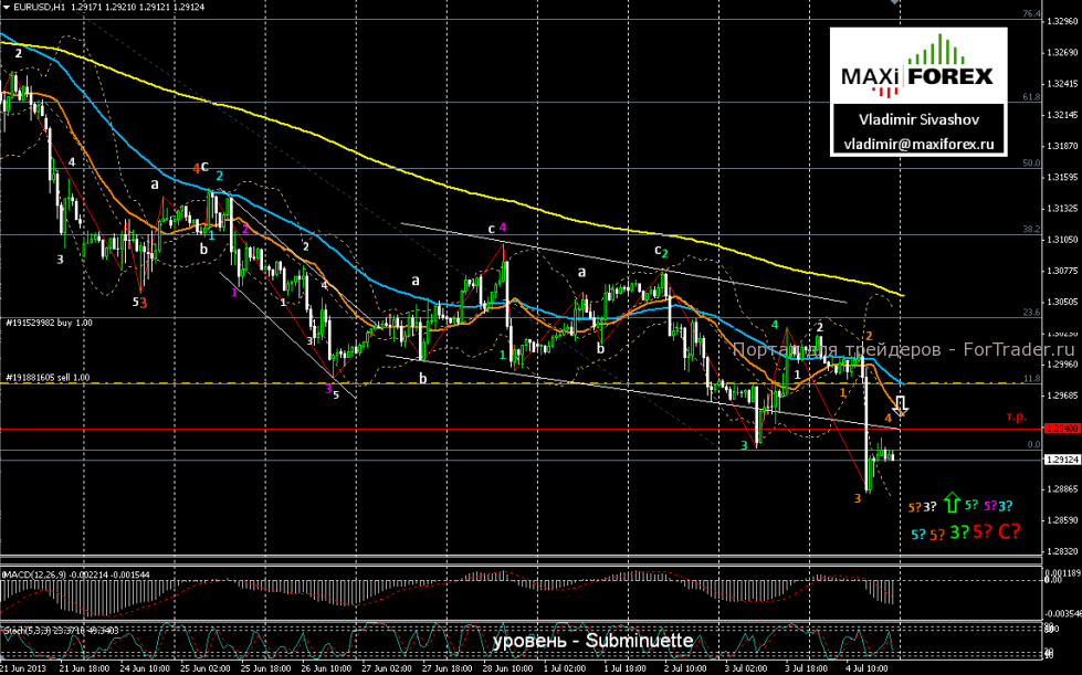 В нашем прогнозе на пятницу, предполагаем продолжение снижения курса единой европейской валюты к целевым уровням 1.2842 и 1.28.