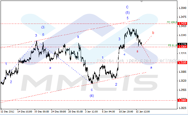 Поэтому сегодня в качестве основного сценария можно рассматривать дальнейшее снижение пары в виде удлиненной фигуры «1». В то же время нельзя исключать и альтернативного сценария, согласно которому пара завершила коррекционное движение и возобновит рост в виде волны «Alt:2».