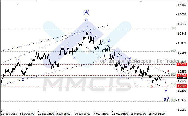 Тем не менее в силе остается основной сценарий, согласно которому пара продолжит снижение в направлении целевого уровня 1.2687 в рамках волны «5» нисходящего импульса.
