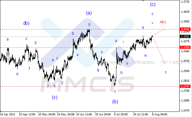 Поэтому в качестве основного сценария на ближайшие дни аналитики рассматривают завершение консолидации вблизи максимумов и начало снижения котировок в рамках первой волны нисходящего импульса старшего порядка. В качестве альтернативного сценария рассматривается вариант дальнейшего роста курса к отметке 1.3415 в рамках усложненной структуры волны «Alt:c», с последующим разворотом.