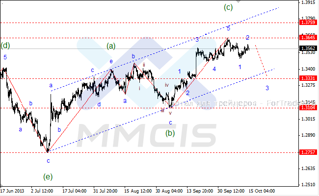 По мнению технических аналитиков, пара евро/доллар завершила коррекционную волну «2» и теперь готова возобновить снижение. Поэтому в качестве основного сценария аналитики рассматривают возможность снижения котировок в направлении отметки 1.3331 в рамках волны «3» нисходящего импульса старшего порядка. Альтернативный сценарий предполагает временный рост курса в область 36-й фигуры в рамках усложненной структуры волны «Alt:2».