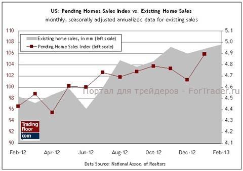 Индекс незавершенных сделок по продаже жилья считается опережающим индикатором в жилищном секторе. Совершенно очевидно, что рынок жилья сейчас восстанавливается. От растущего объема продаж до увеличения строительной активности – все указывает на восходящий тренд, и в ближайшее время такая ситуация, скорее всего, будет сохраняться. Но восстановление не идет по прямой линии. Аналитики полагают, что впереди возможно некоторое отклонение от курса, по крайней мере, это следует из среднего прогноза в отношении сегодняшнего индекса. Участники рынка ожидают падения в районе 0,7%. Другими словами, экономисты прогнозируют сокращение количества подписанных (но не завершенных) контрактов купли-продажи нового жилья. Это едва ли будет означать конец восстановлению на рынке жилья, но если темпы падения окажутся сильнее, то возникнут вопросы по поводу рыночного потенциала этой весной.