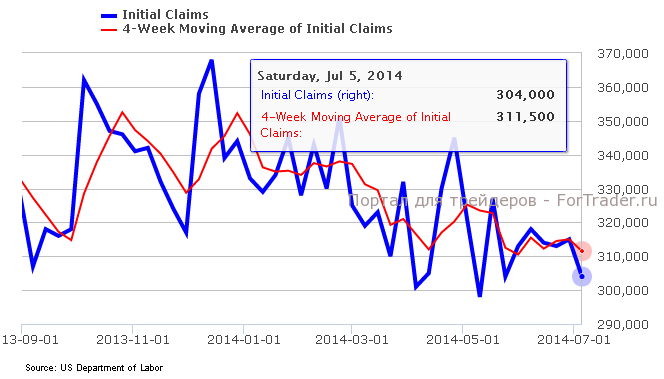 Число первичных заявок на пособие снизилось до минимального уровня за шесть недель. Число первичных заявок на пособие по безработице в США на прошлой неделе упало на 11 тыс. — до 304 тыс., тогда как ожидался рост на 1 тыс. — до 316 тыс. Среднее число заявок за последние четыре недели снизилось на 3,50 тыс. — с 315 тыс. до 311,50 тыс.