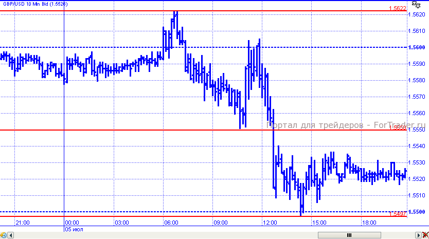 Под давлением в четверг оказался и британский фунт. В начале торговых суток пара попыталась преодолеть сопротивление 1,5600/1,5620, но неудачно. В результате цены начали падение, которое на короткое время было сдержано поддержкой 1,5550, от которой цены еще раз вернулись к отметке 1,5600. Но впоследствии возобновили падение и «прокололи» уровень 1,5500. К завершению дня пара откатилась к отметке 1,5520.