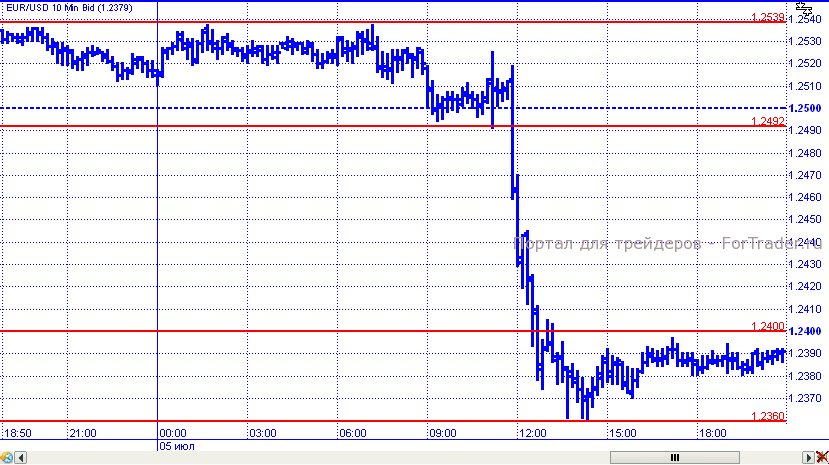 Евро попал под давление. Торговые сутки начинались весьма спокойно – пара консолидировалась в пределах диапазона 1,2492 — 1,2539. Но решение ЕЦБ понизить ставку, которое уже было заложено в цены, внесло свои коррективы и евро начал активное падение, в рамках которого преодолел несколько уровней поддержки. Сдержано нисходящее движение было уровнем 1,2360. К завершению дня пара совершила незначительный откат и закрылась на уровне 1,2390.